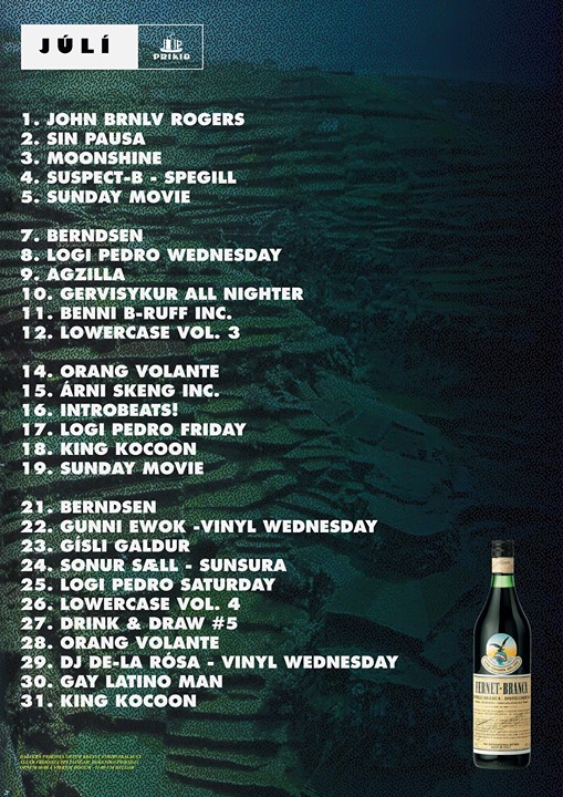 Margt að ugga í júlí, byrjum á Kahuna Keppninni sem er næstkomandi laugardag, stefnan tekin á að halda hið árlega FERNET BRANCA körfuboltamót okkar í lok mánaðar, Drink & Draw á sínum stað, ný fastakvöld á sunnudögum undir nafninu Lo-Fi, vinyl wednesdays, alltaf slatti af okkar usual helgar suspects og allt gott og gilt Prikstuff!